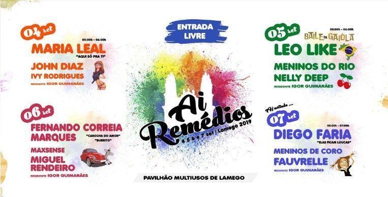 "Ai Remédios" é um evento com a duração de vários dias, realizado anualmente durante as festas de Nossa Senhora dos Remédios, em Lamego. Desde a sua primeira edição que conta com os apoios da Câmara Municipal de Lamego, bem como dos principais espaços noturnos da cidade ( Maria Chic, Mau Mau Social Club, O Cortelheiro, Brian Boru Irish Pub).
